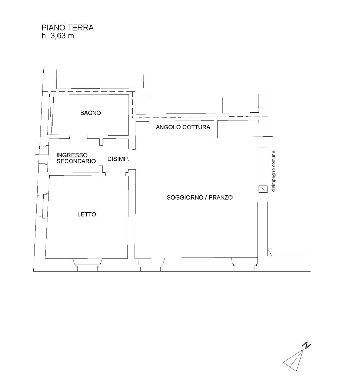 PT Doppio ingresso, soggiorno con angolo cottura, camera matrimoniale e bagno.