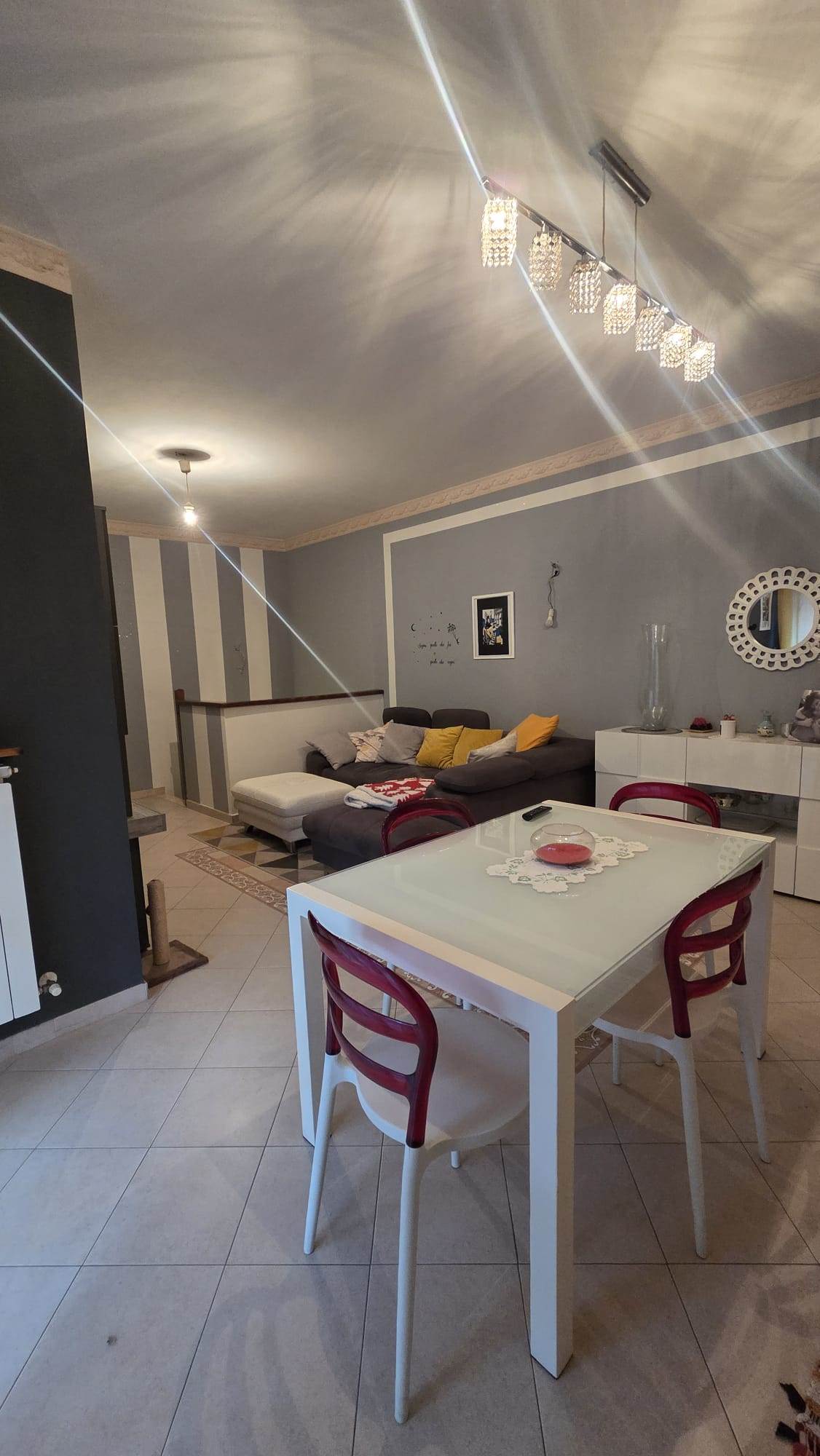 - al piano primo ingresso in sala da pranzo, angolo cottura con accesso diretto al terrazzino, disimpegno notte, tre camere e bagno.
