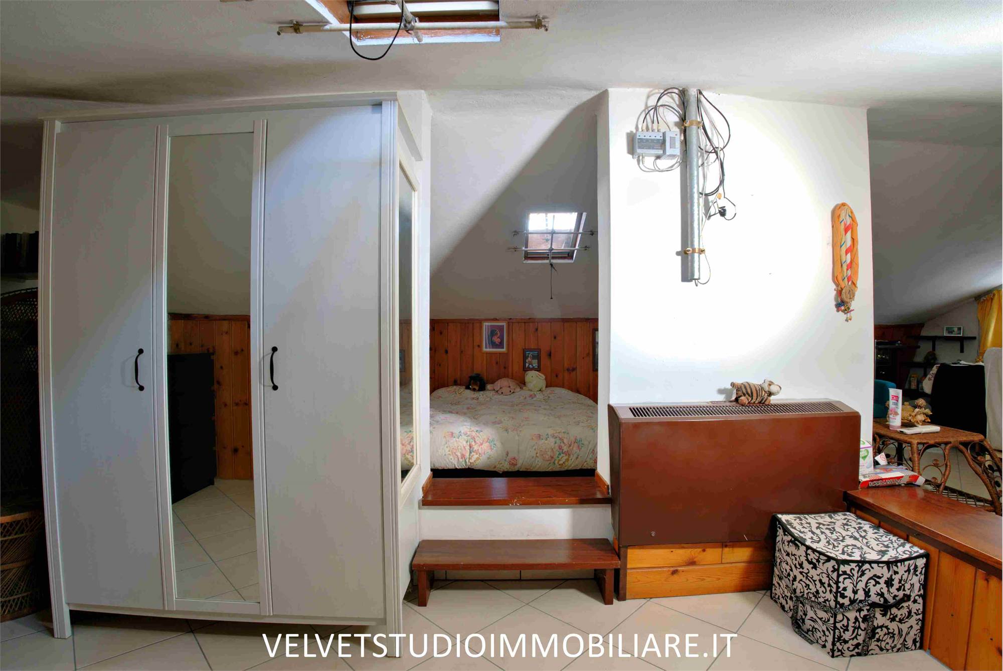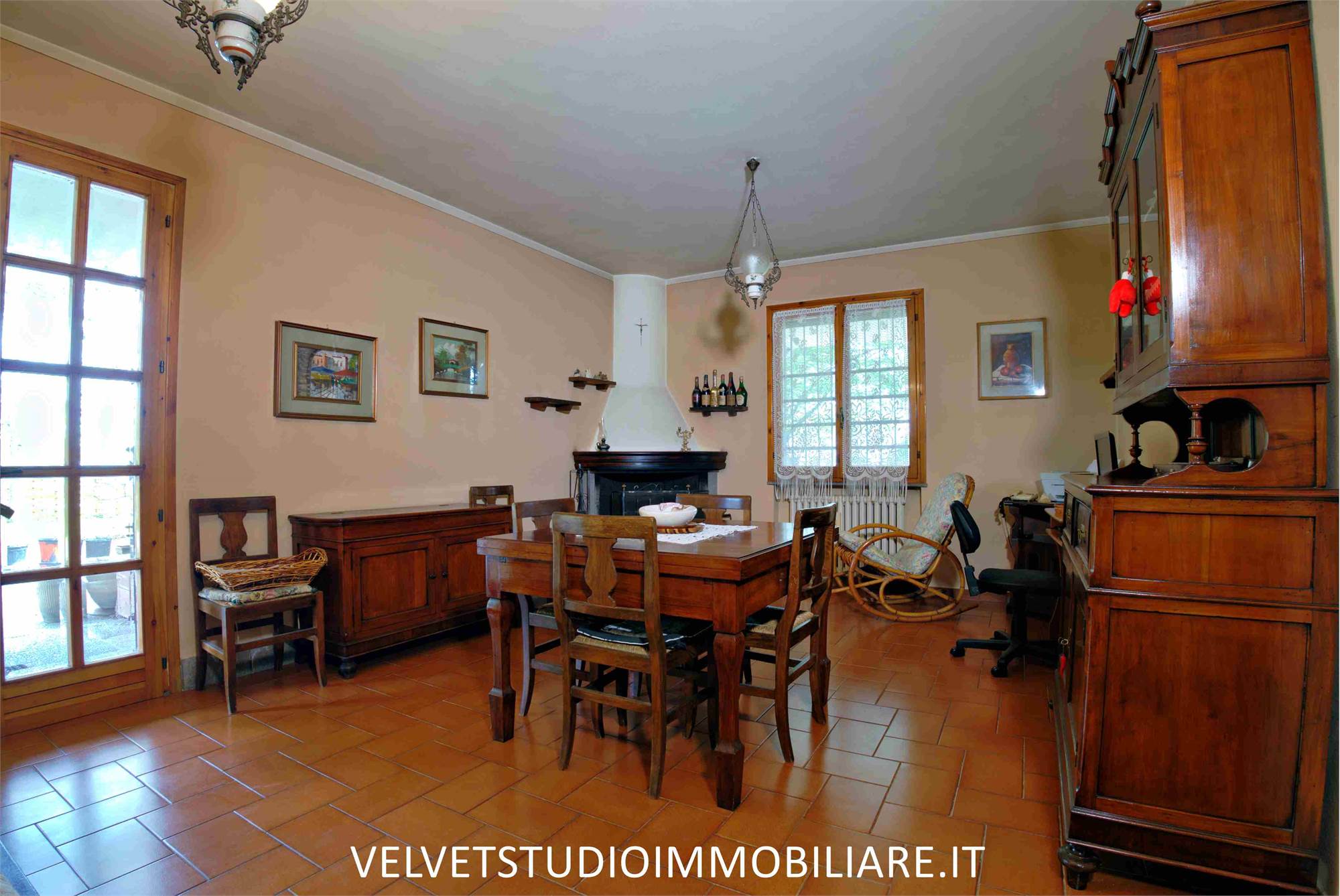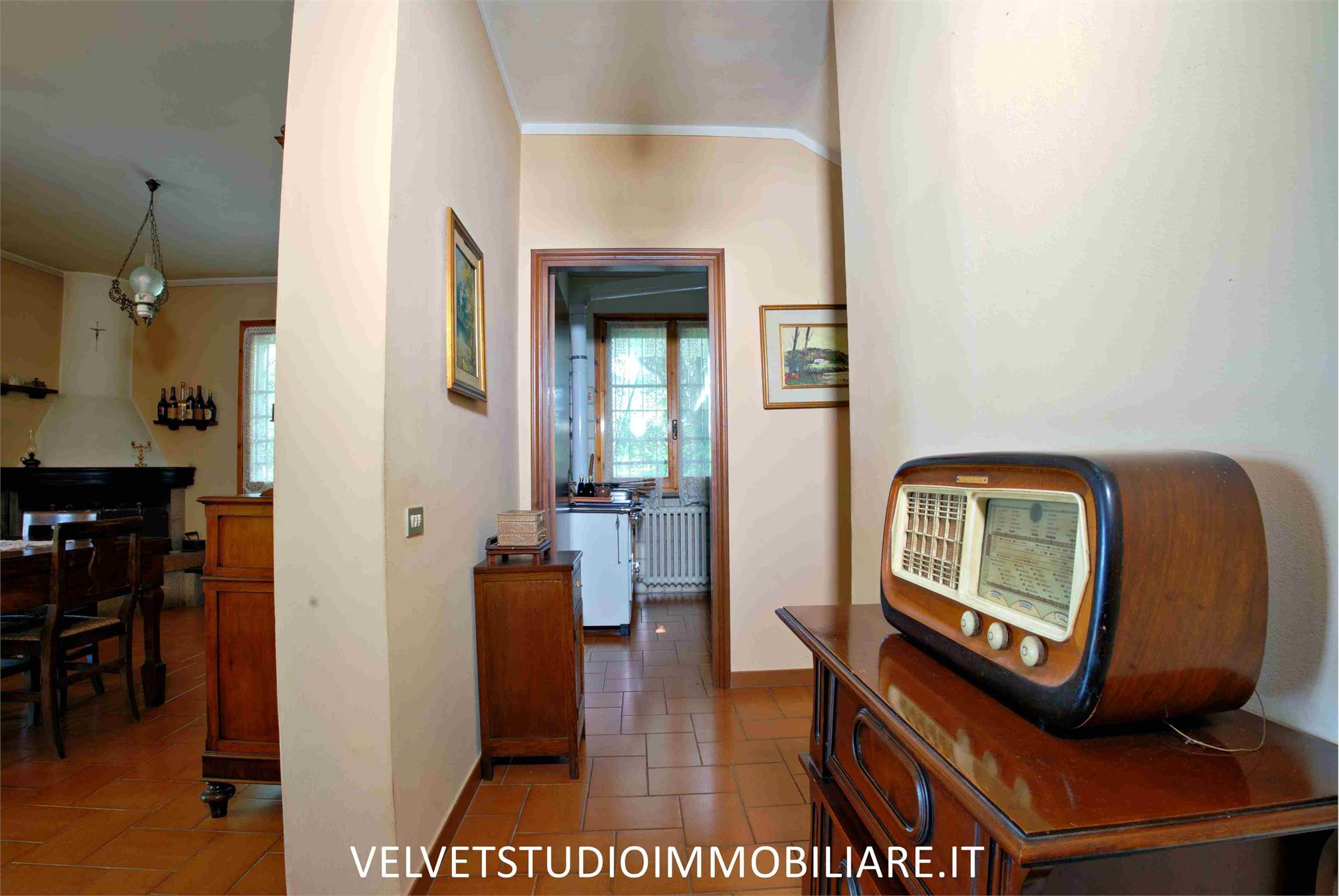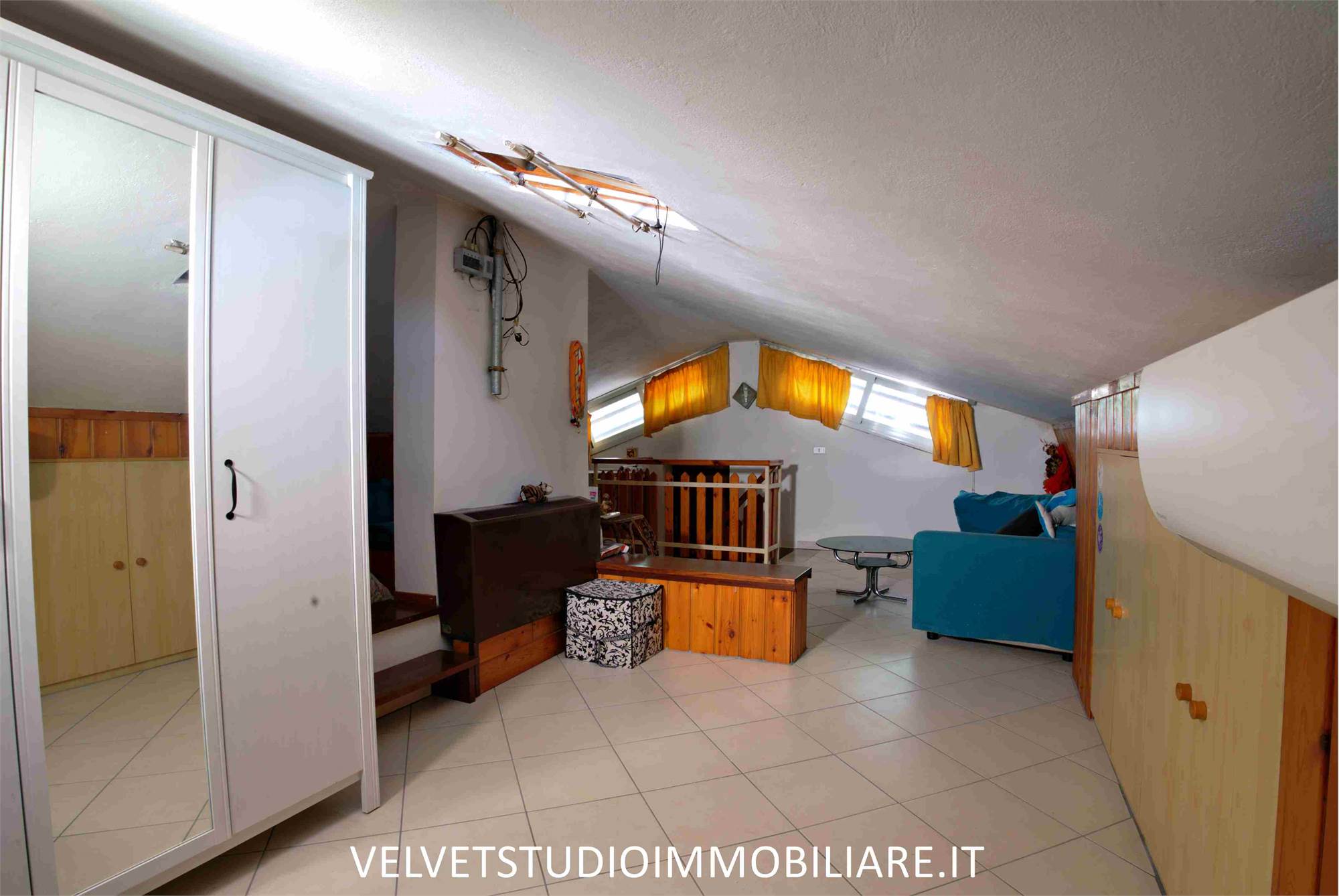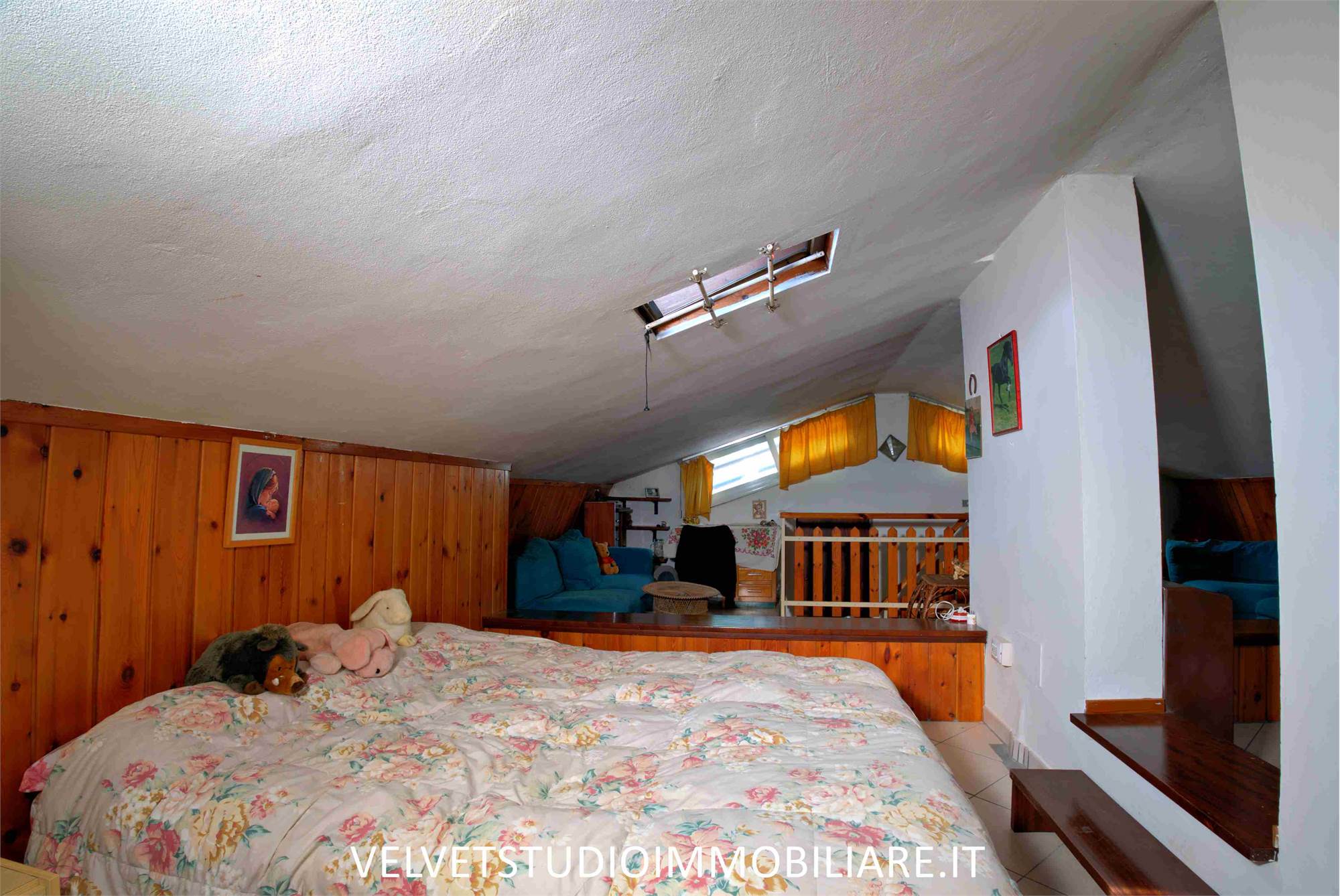 - Al piano primo ingresso in ampio disimpegno, cucina abitabile con camino e balcone, ampio soggiorno con balcone, disimpegno, tre camere di cui una con terrazzo, bagno. Al piano secondo ampia soffitta.